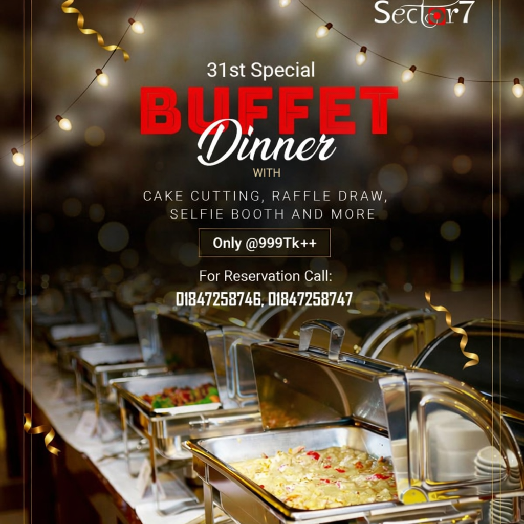 On the eve of stepping into the new year by wrapping up this one, Sector7 Restaurant & Party Center is giving you a special Buffet Dinner offer only @950++Tk including: